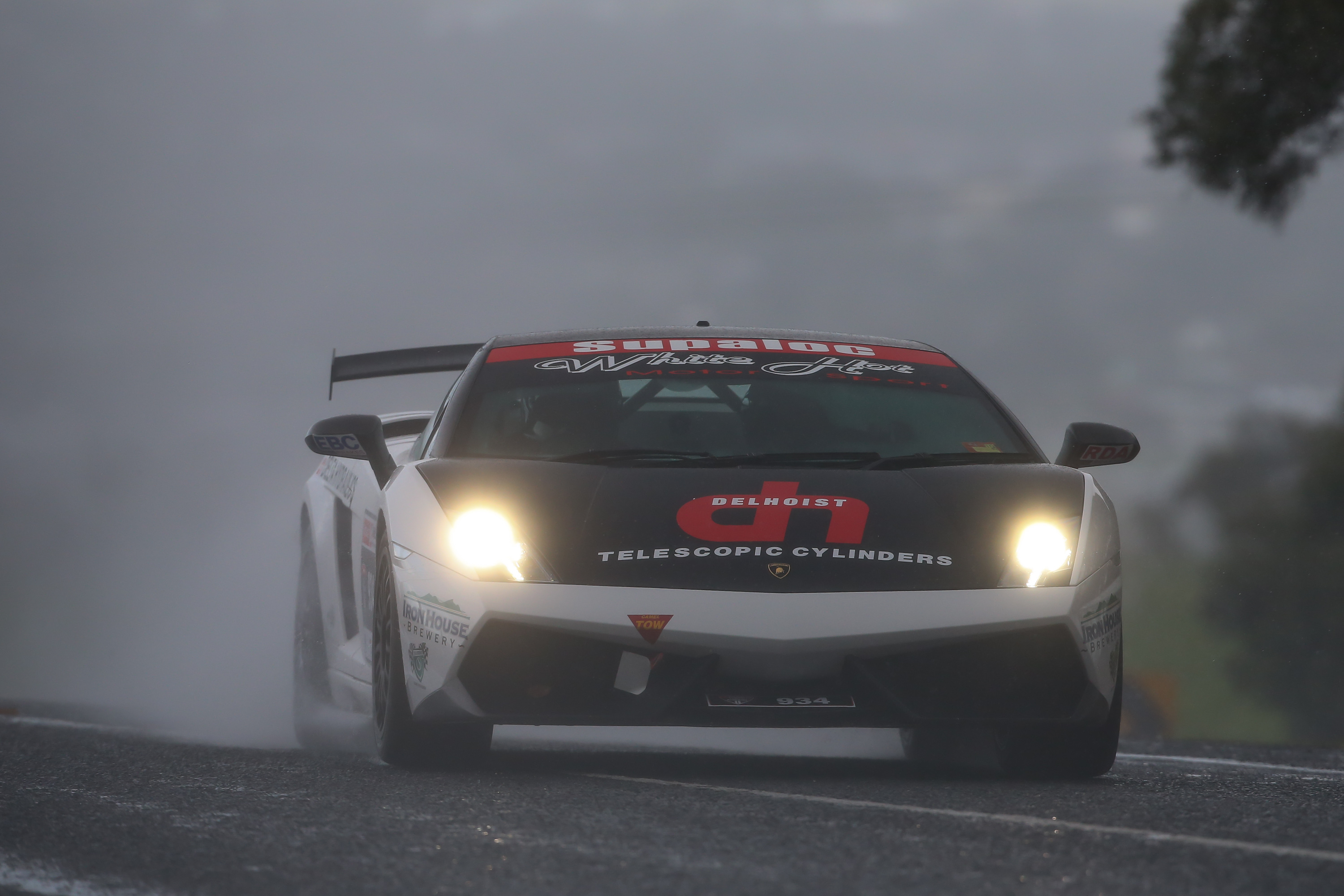 In Classic Outright, Nick Streckeisen in a Porsche 944 Turbo leads Tolley Challis’ older Porsche 911 by eight seconds, with Barry Faux third in a Mazda RX7.